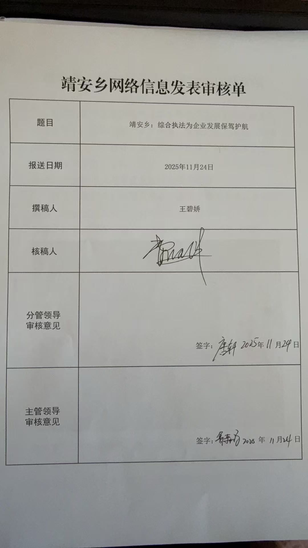 下一步,靖安乡将持续深化涉企行政检查规范化建设,完善“综合查一次”长效机制,动态优化检查清单与执法流程,兼顾监管效能与企业发展需求,切实把“无事不扰、有求必应”的服务理念落到实处,持续擦亮法治化营商环境“金字招牌”。(王碧娇)