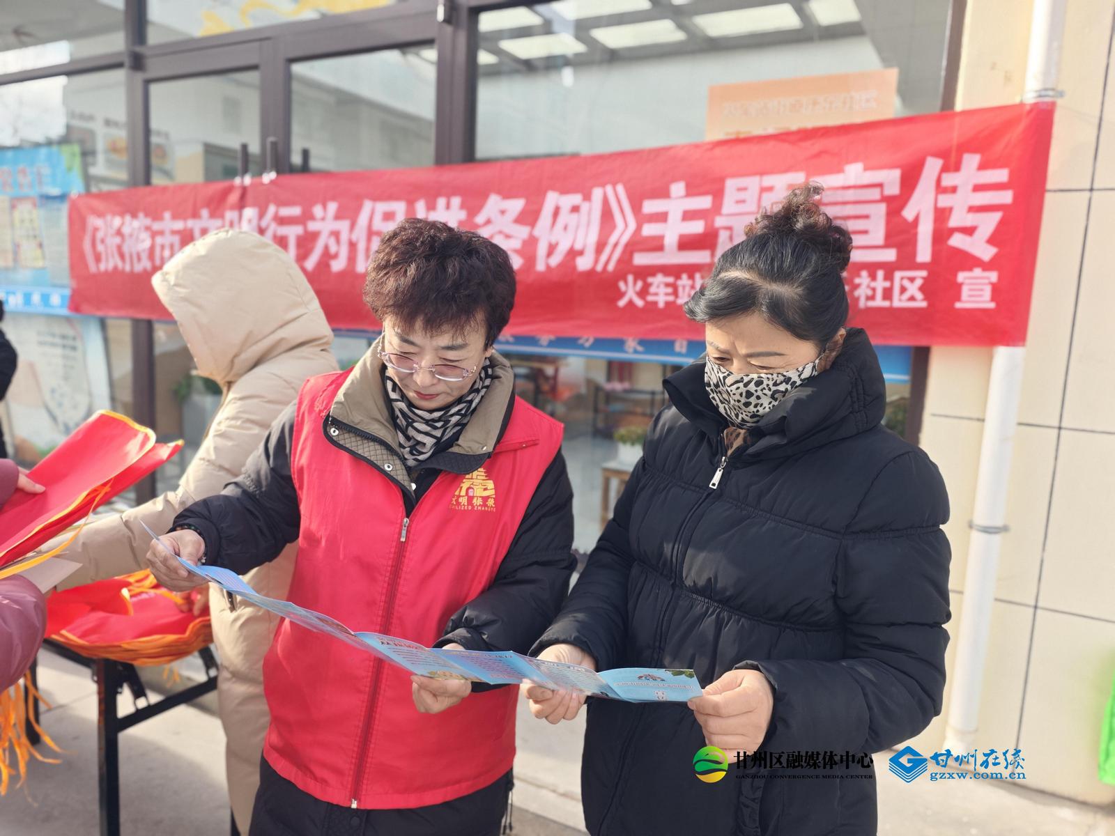 为清朗文化风气、涵养文明新风,甘州区火车站街道康乐社区主动作为,聚焦辖区文化环境清朗破难点,将《张掖市文明行为促进条例》宣传融入其中,精准落实宣传整治措施,以文明行为引领筑牢基层文化安全防线,为营造清朗社会文化环境注入动力。