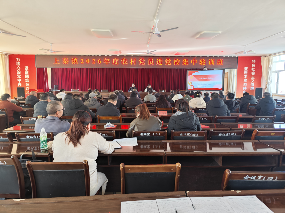1月19日,上秦镇2026年度农村党员进党校集中轮训班正式开班。本次培训旨在深入学习贯彻习近平新时代中国特色社会主义思想、党的二十大精神及党的二十届四中全会精神,扎实推进“先锋引领”工程,全面提升农村党员的党性修养、政策理论水平与致富带富能力。来自全镇各村党(总)支部的72名农村党员参加培训。