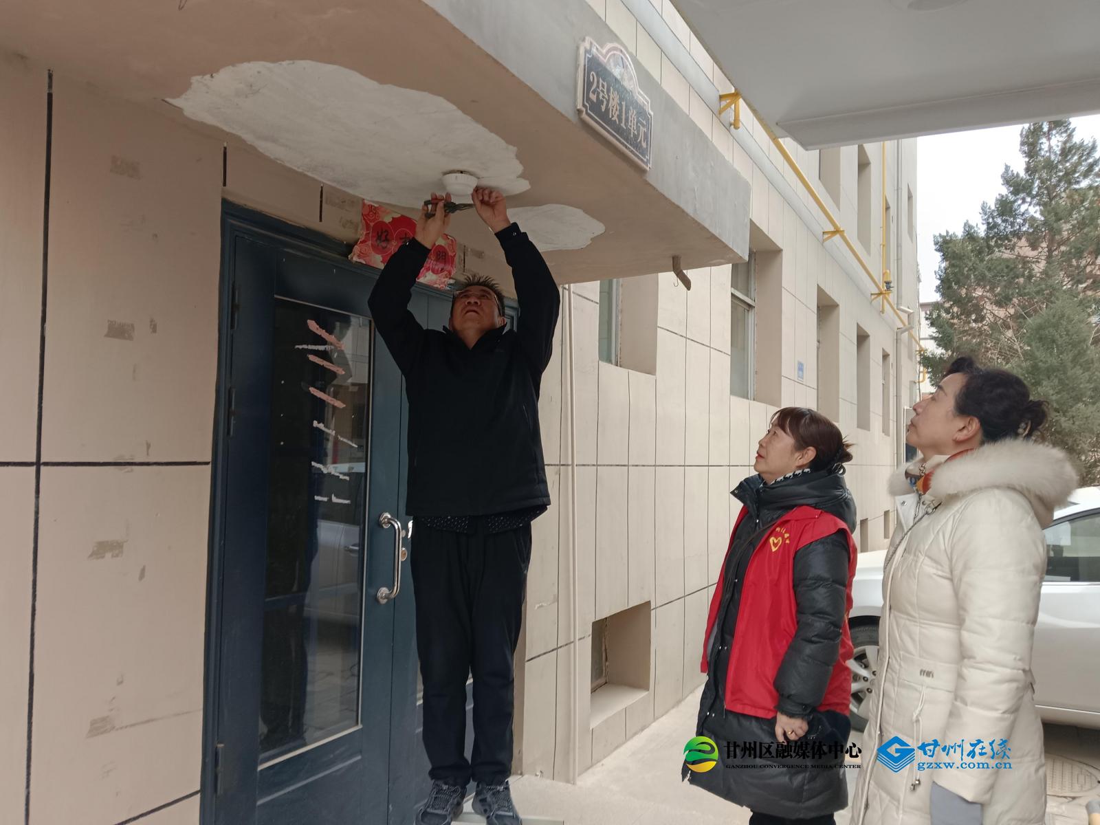 甘州区南街街道南关社区:单元门口添新灯 照亮居民回家路
