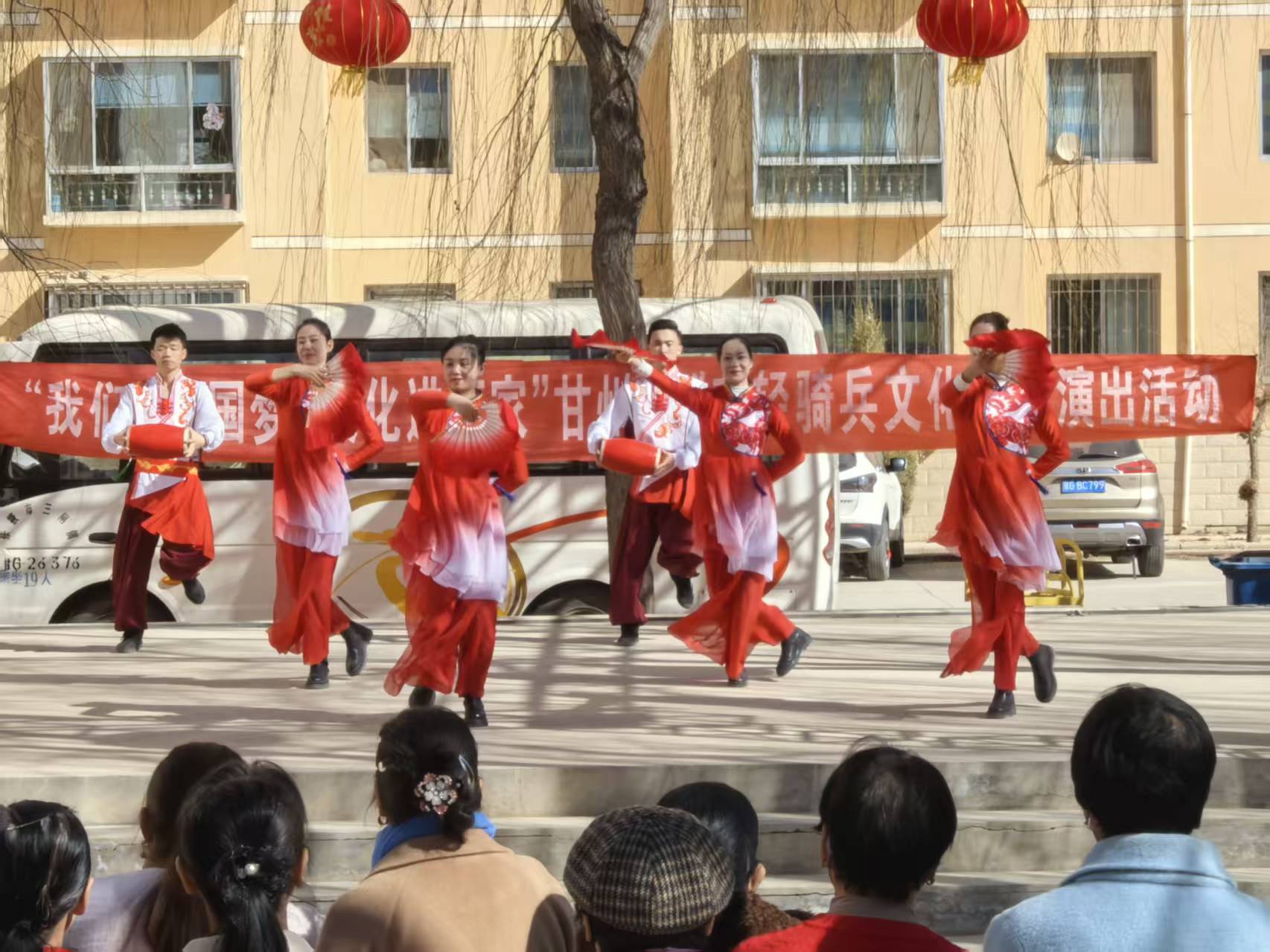 活动中,气势恢宏的舞蹈《盛世华章》为本次活动拉开帷幕,悠扬婉转的马头琴独奏、行云流水的二胡演奏,展现了传统器乐的独特魅力;深情的歌曲独唱唱出了新时代群众的幸福心声与精神风貌;活力四射的舞蹈《绽放》《奔驰在千里草原》和独具地方特色的甘州小调联唱韵味悠长……演员们饱满的热情、精湛的表演赢得了现场群众的阵阵掌声,活动现场洋溢着欢乐祥和的气息。