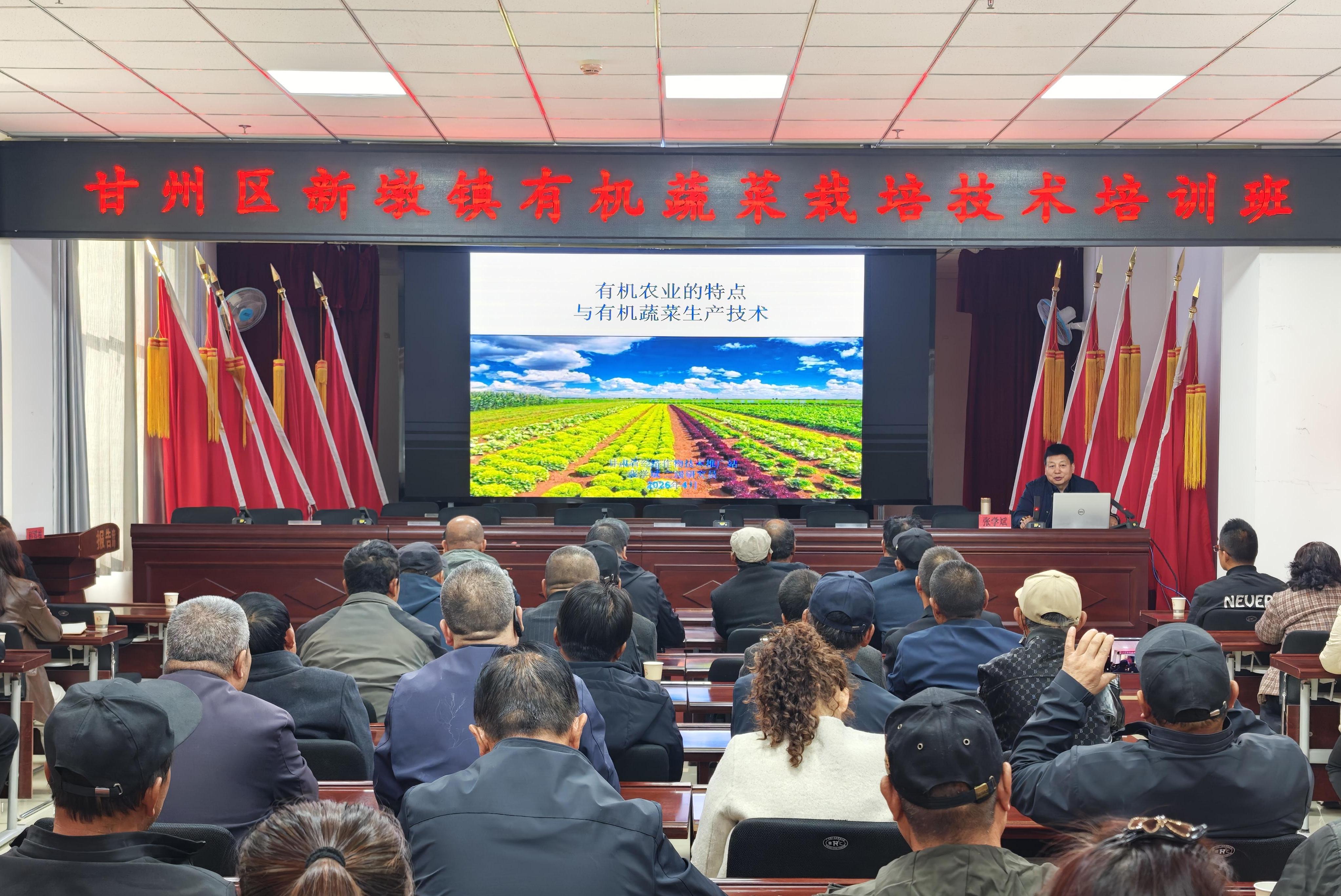 为深入贯彻落实市、区关于有机蔬菜产业发展部署,全面提升全镇有机蔬菜产业标准化、绿色化、有机化发展水平,助力乡村产业振兴,近日,甘州区新墩镇举办2026年有机蔬菜栽培技术专题培训班。本次培训特邀权威农业技术专家授课,镇域蔬菜种植企业、专业合作社、种植大户、各村社干部及有机认证工作相关人员齐聚一堂,充电蓄能学技术、凝心聚力促发展,为全镇有机蔬菜产业高质量发展注入新动能。