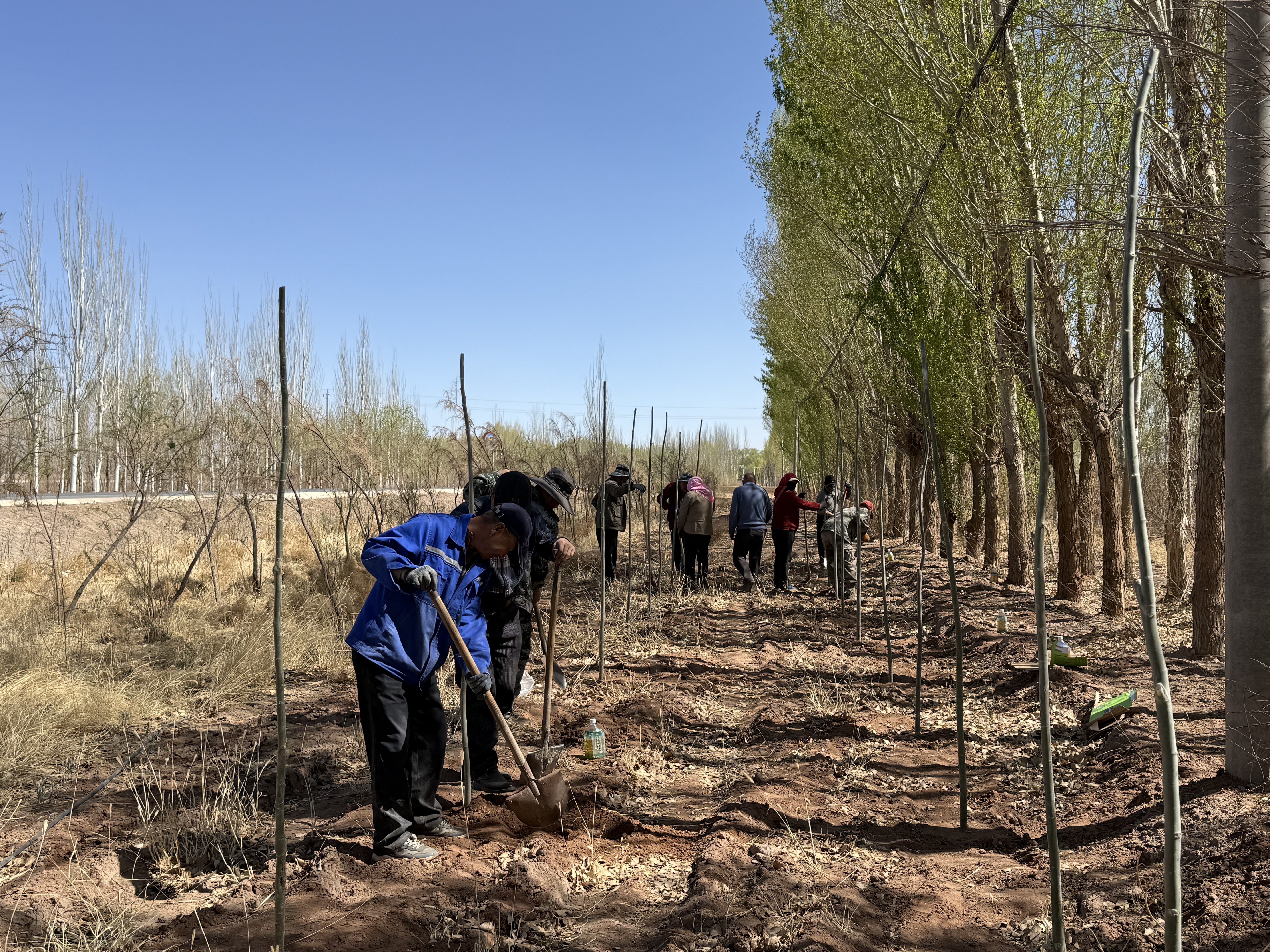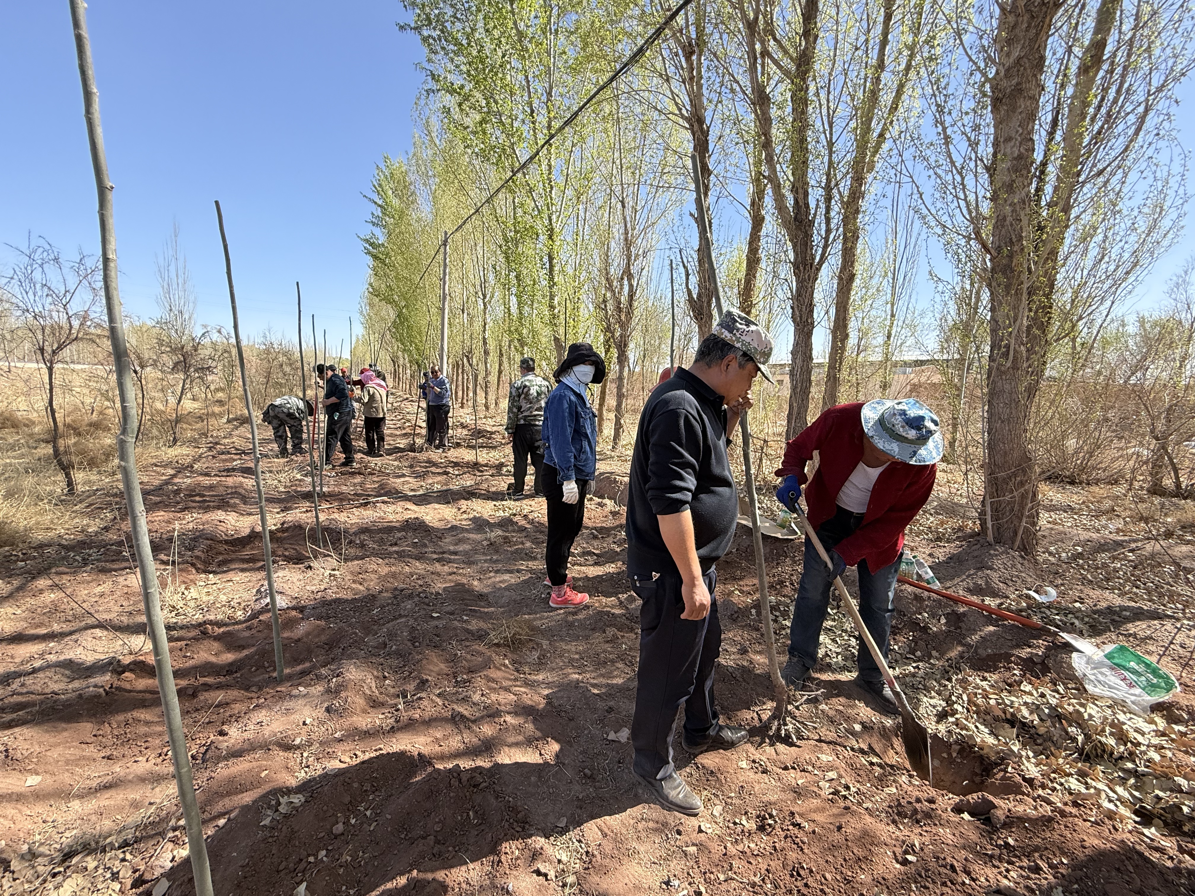 植树现场,大家热情高涨、干劲十足,严格按照植树技术规范,分工协作、默契配合。挥锹铲土、挖坑放苗、扶正踩实、围堰浇水,每一个环节都一丝不苟、有条不紊。从干部到群众,从党员到志愿者,人人都以饱满的热情投入到植树劳动中,用汗水浇灌希望,用双手栽种绿意。一排排新栽的树苗整齐排列、迎风挺立,为春日的乡村增添了勃勃生机,勾勒出一幅人与自然和谐共生的美丽画卷。