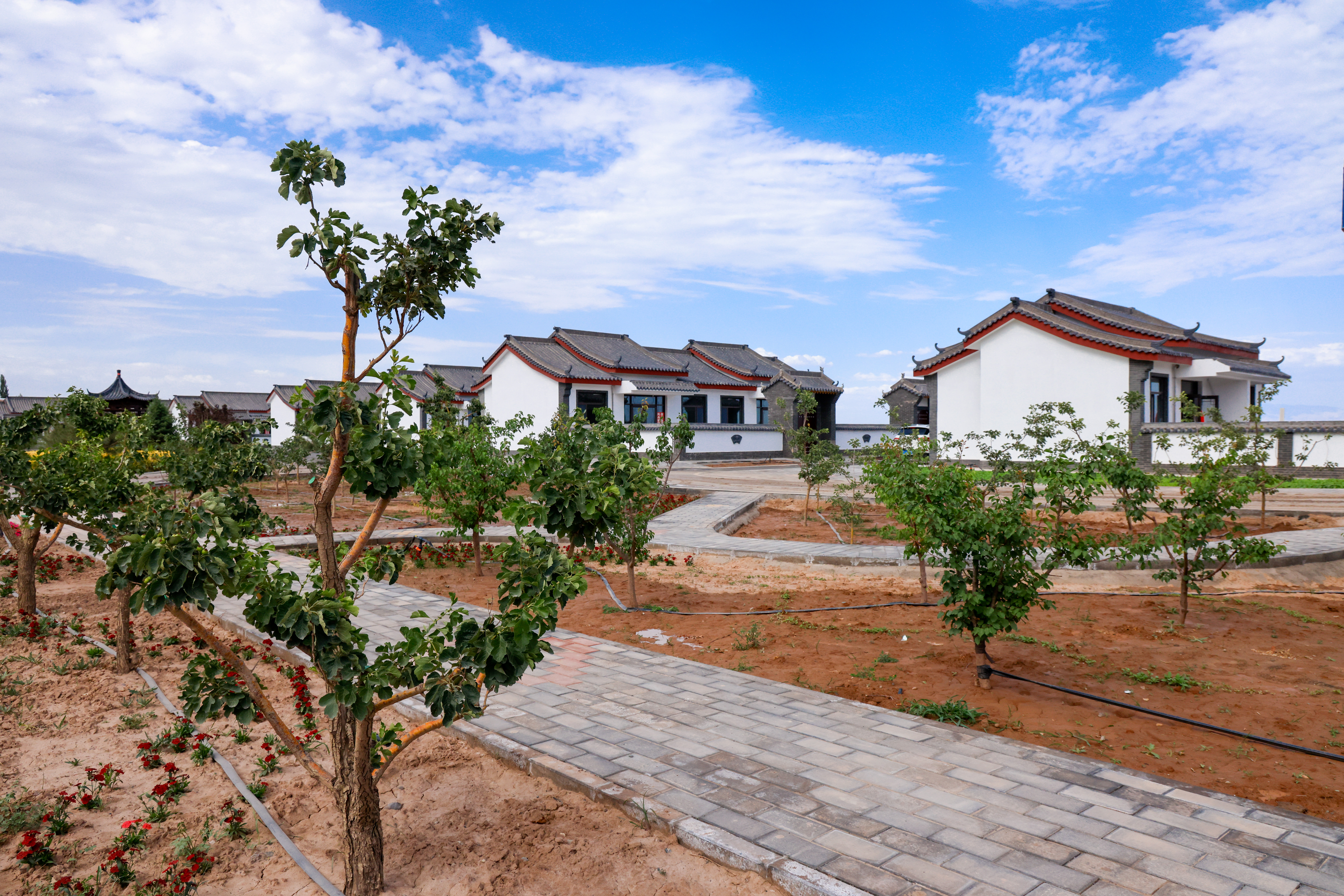 同时,为推动乡村绿化从“量”到“质”的跨越,全区正着力推进特色林果小镇建设,强化生态与产业融合。沙井镇“玉米小镇”,规划绿化面积40亩,以枣树、桃树、梨树、杏树等乡土果树为主,兼顾生态防护与果品产业发展,打造“春有花、夏有荫、秋有果”的特色产业绿化示范带。甘浚镇“山楂小镇”,拓展绿化面积50亩,重点栽植山楂、海棠等主题苗木,进一步凸显“山楂文化”主题特色,推动绿化景观与乡村旅游深度融合。