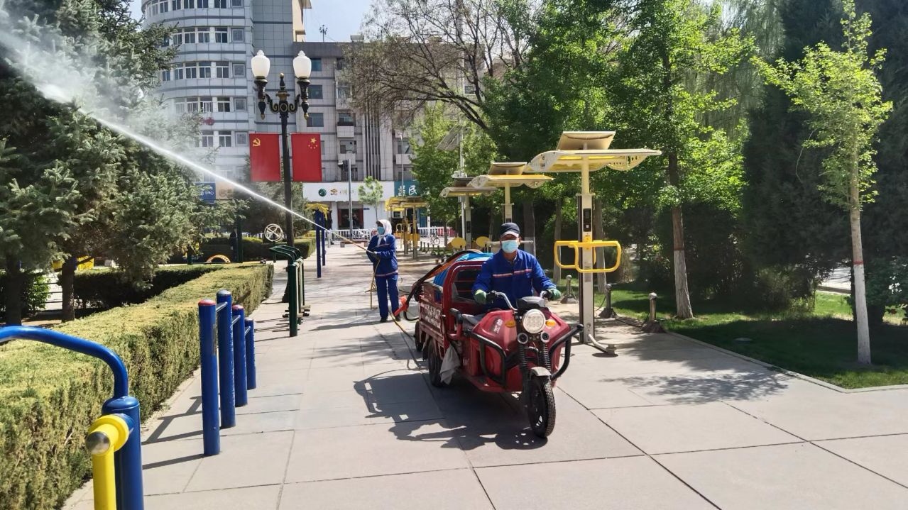 【三抓三促”进行时】 甘州区广场管理办公室开展 “广场大清洗”活动